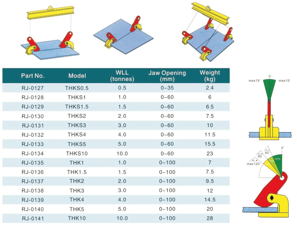 ![]() Rated Load:0.5-10Tons● Purpose:It is suitable for horizontal lifting of steel plate ● Compact shape design, relatively light weight and high strength ● Must be used in pairs ● THK has a large opening ![]() |