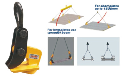 ● This horizontal Tong is used in conjunction with double leg sling and is suitable for steel plates with a length of less than 1500mm. When lifting steel plates with large or long area, we recommend using lifting beam.
