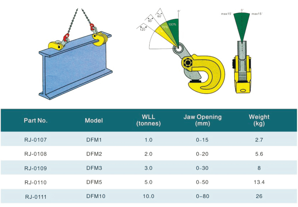 ● The maximum allowable lifting weight of a single overturning Tong is the rated load. It can be used alone in lifting operation. When lifting horizontally, a beam must be added